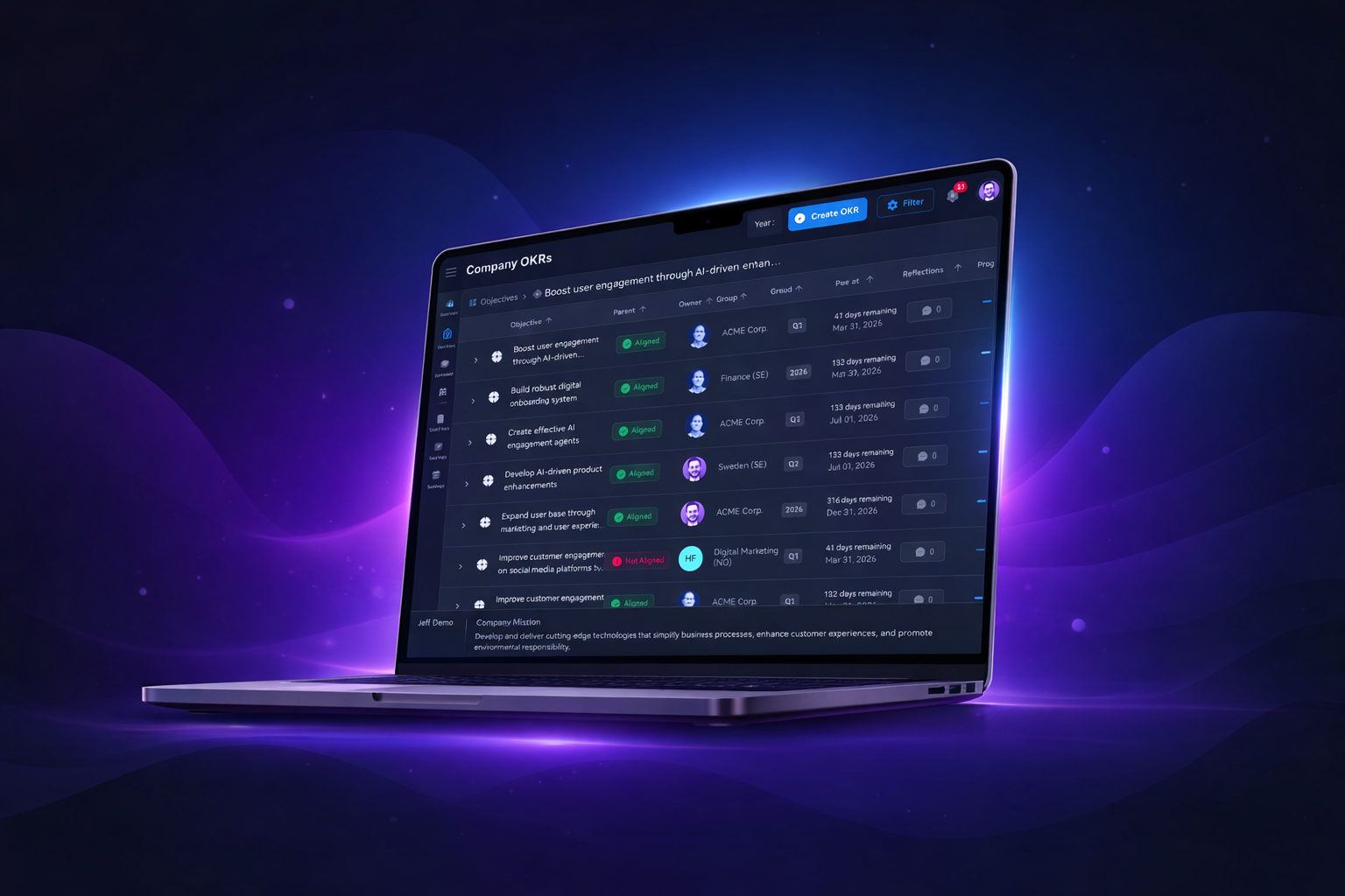 Leaders get real-time visibility into who is doing what, where progress stalls, and which objectives need attention — across every team and level.
